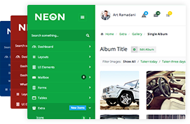 Here you will find the highlights about latest version of Neon theme. Learn more by scrolling down on this page. Neon contains a total number of 107 HTML files, 7 new HTML files are added in version 1.7 since 1.5.1.
