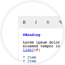 The Markdown area allows you to write in Markdown and HTML while it generates a real-time preview. It includes a toolbar that helps you to change text appearance and add links, pictures, blockquotes and lists without having to write code. Try it!